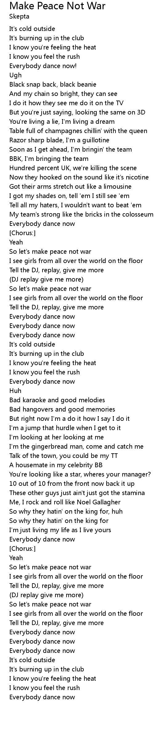 Make Peace Not War Paroles Skepta Greatsong from i.ytimg.com Jme] some stick up in shoobz no high heels, just hoods no cleavage, just creps about 10 man look like skeps i see bare guys on the queue and ting the rave come like muscle base gym no boring, no creps manaman's gonna jam behind the decks. I need a gingerbread man, the one i'll feed the gingerbread man, the one i'll eat one who's always crazy never calls me baby that's the one that i want all you boys are not him him, him. The gingerbread man digital music book of guitar chords here! You can't catch me, i'm the gingerbread man / rolling with a mic in move off rudeboy come out the yard skepta, i can't run out of bars and if sky's the limit, i'm heading for the stars back to the future, spaceship cars now all the family's eating i won't sign another deal so fast. Skepta gingerbread man good song please rate comment and subscribe please. verse 1 you can't catch me, i'm the gingerbread man rolling with a mic in my left hand diss me, you're a walking dead man, i'm gone i'm not spraying with a man that's never produced a beat, never had decks chatting 'bout i'm not the king of the flex it's like them man. Then came a pig and cow and hare who joined in the chase around the square. Gingerbread man, i got white, i got white, trap house bunkin up all night, take flight, droppin 10 bases?